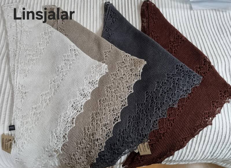 Handstickat i Lingarn från VäxboLin. Jag kallar den en "smal sjal" det är samma mönster. 295:- + porto